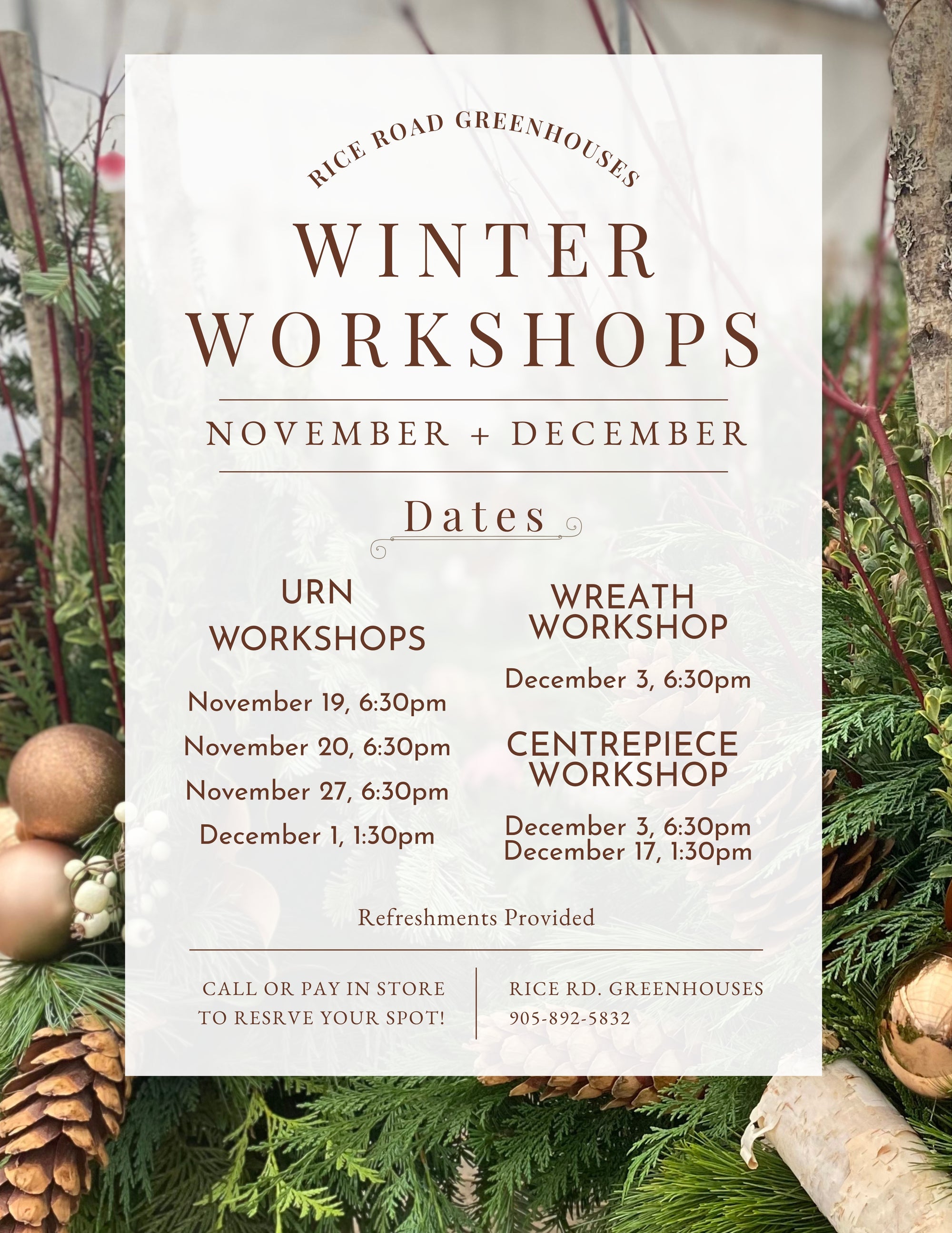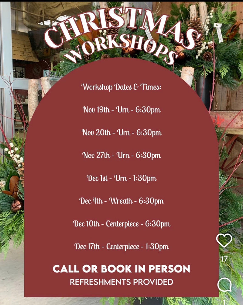 Come into the store or call us to register for an Urn, Centrepiece or Wreath Workshop.